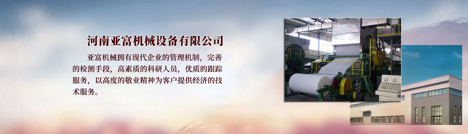 河南亞富機械設備有限公司致力于為用戶提供質量優、工藝成熟的各種造紙設備、造紙機械、和制漿造紙裝備及各種紙類加工設備。設備可用于各種生活用紙和工業用紙的造紙企業,以及草漿、木漿、竹漿和再生漿的制漿企業。[查看詳情]